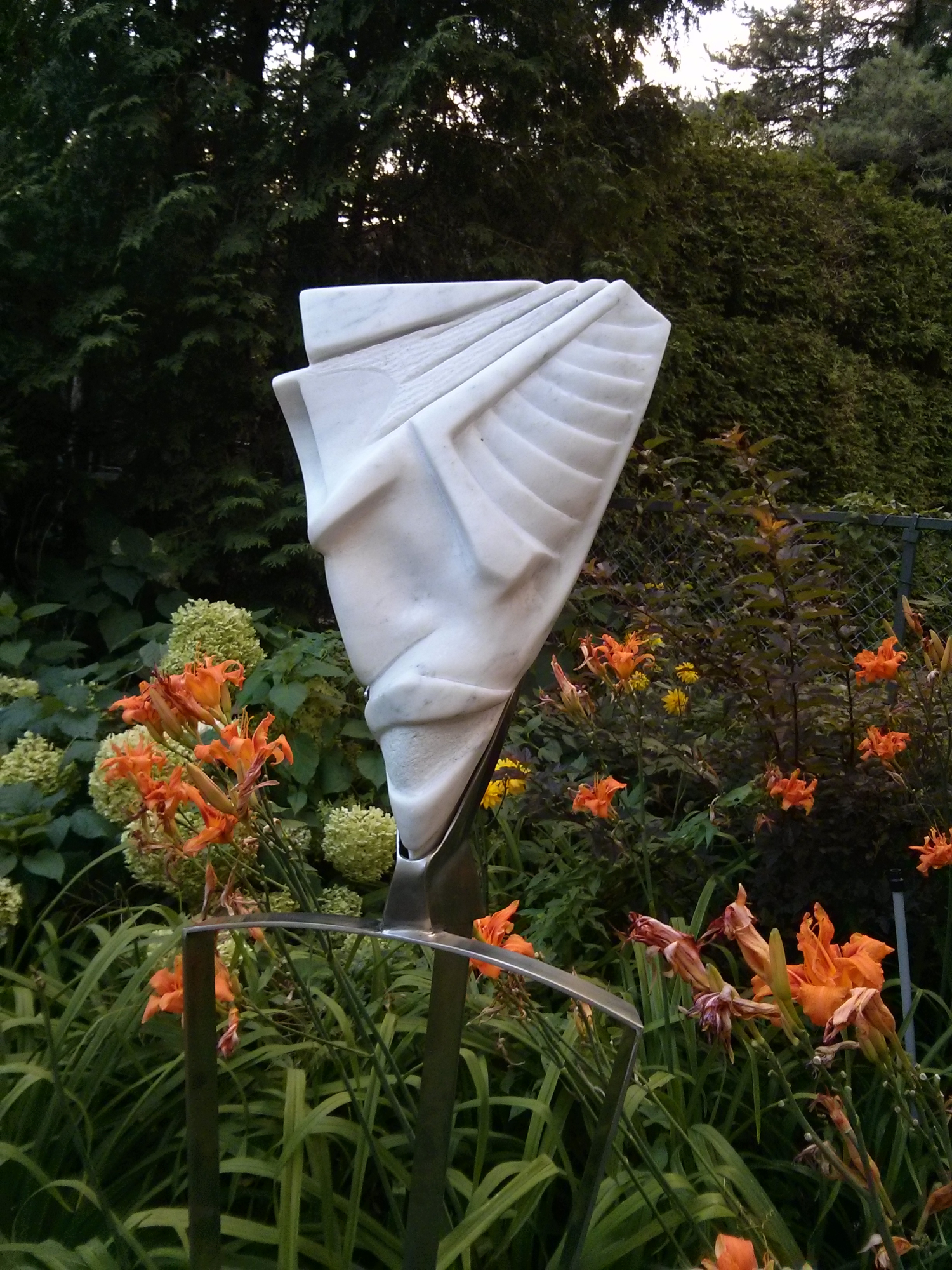 Tête heureuse, Marbre du Vermont, acier inox, collection privée