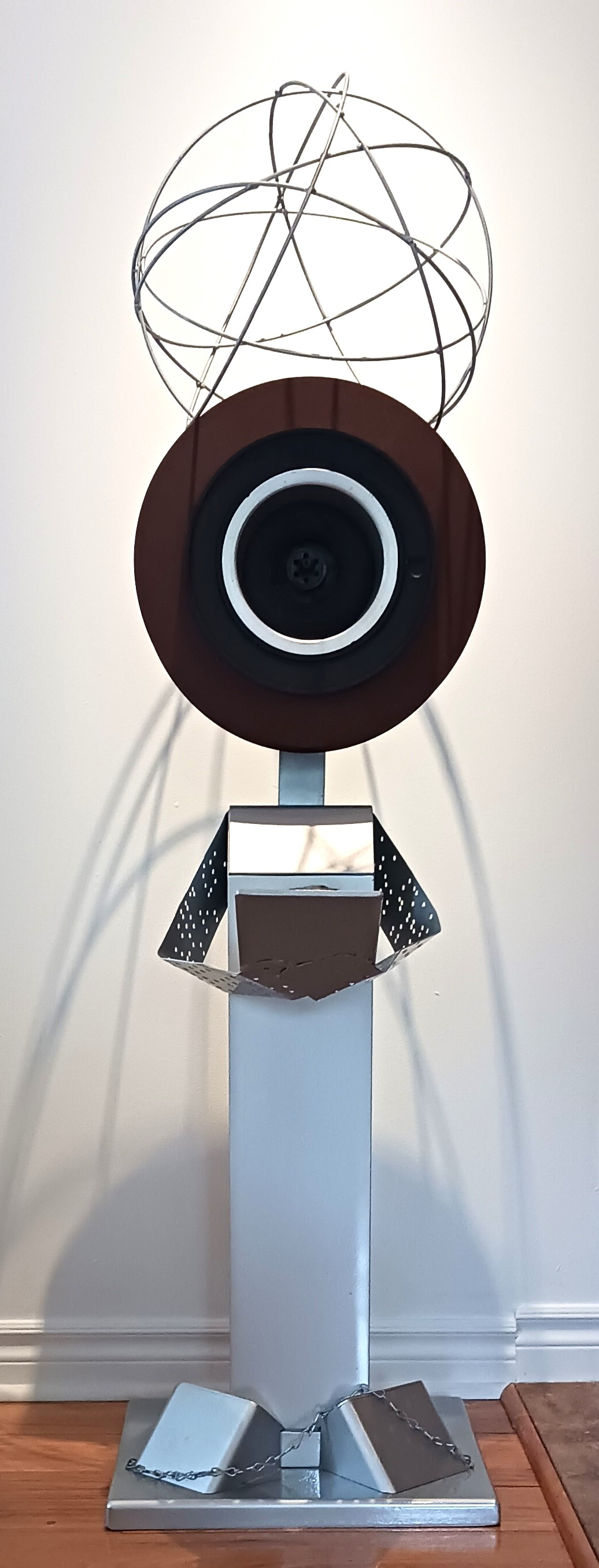 Les développements en effervescence de l’intelligence artificielle m’interpellent et m’ont conduit à matérialiser ma réaction par cette sculpture.